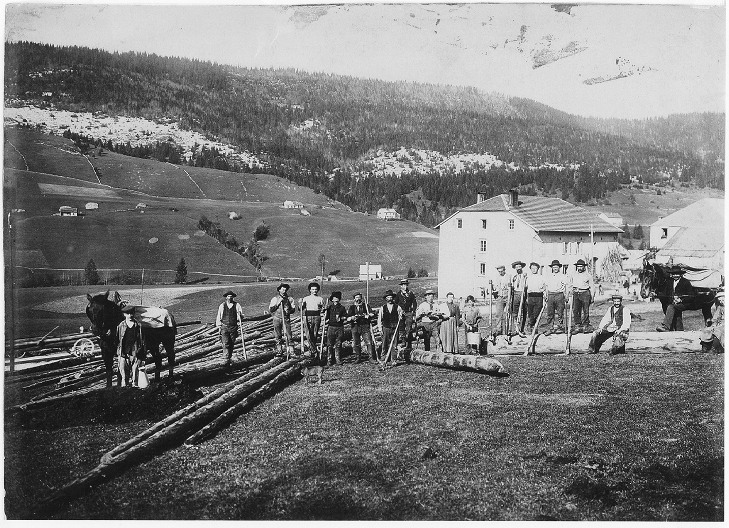 Descrizione: Squadra di Boscaioli e carpentieri: da sx 3° Zanardi Pietro – il 4° Pesenti Martino “Polastrì” e fratelli.