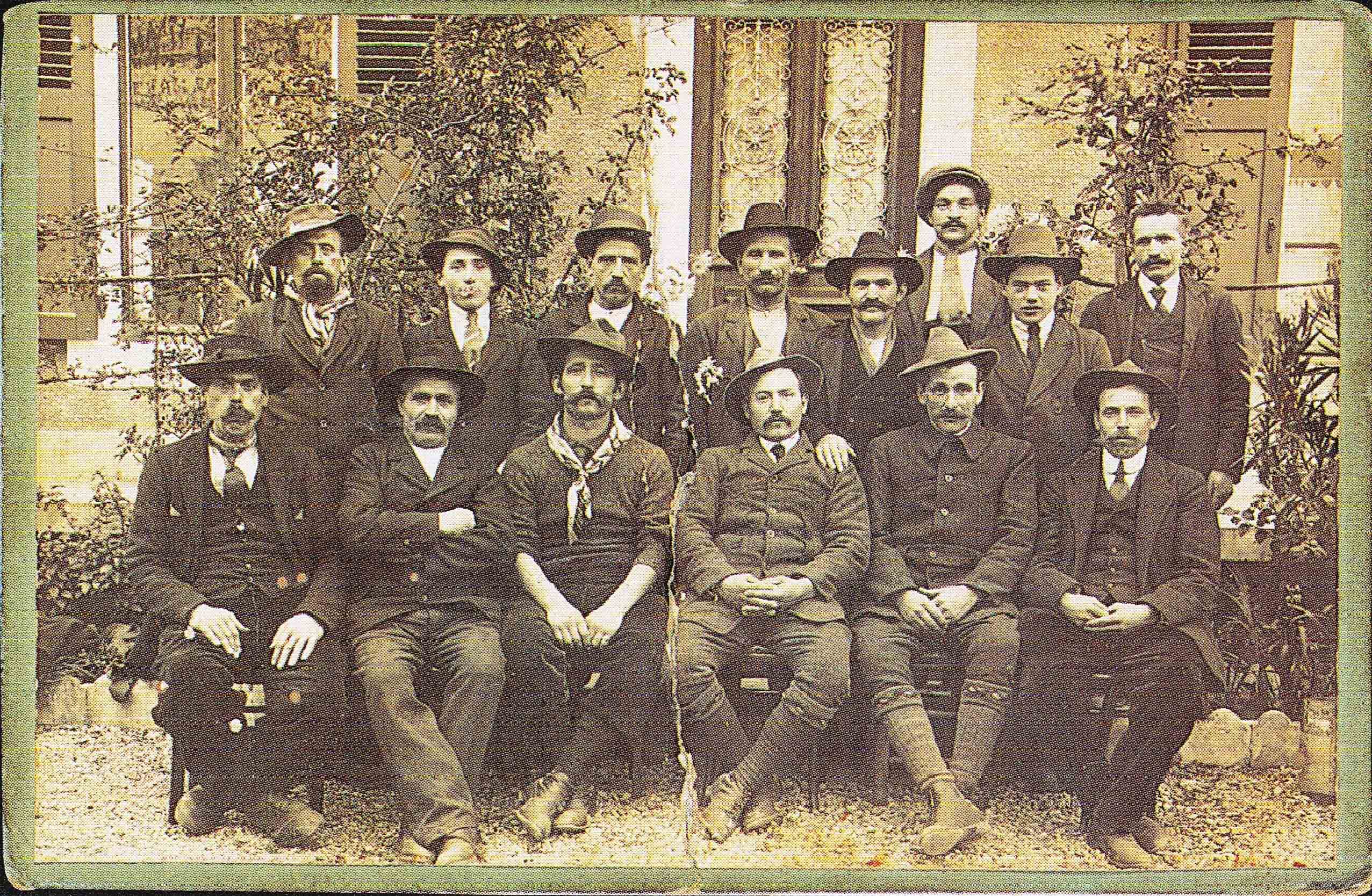 Descrizione: Gruppo di emigranti boscaioli di Brembilla – 1° Salvi Battista “Pulina”18-01.1887 4° Gotti Ambrogio “Cèl 10.11.1862 – 5° Gervason Giuseppe “Gìge” – 7°- Locatelli Giuseppe “Cabarèl” 05.04.1874 – 9° Carminati Stefano “Stéen” - 12° Gamba Antonio” Tonèla” 11.08.1862 - 15° Salvi Alessandro “Ciando”8.10.1889.