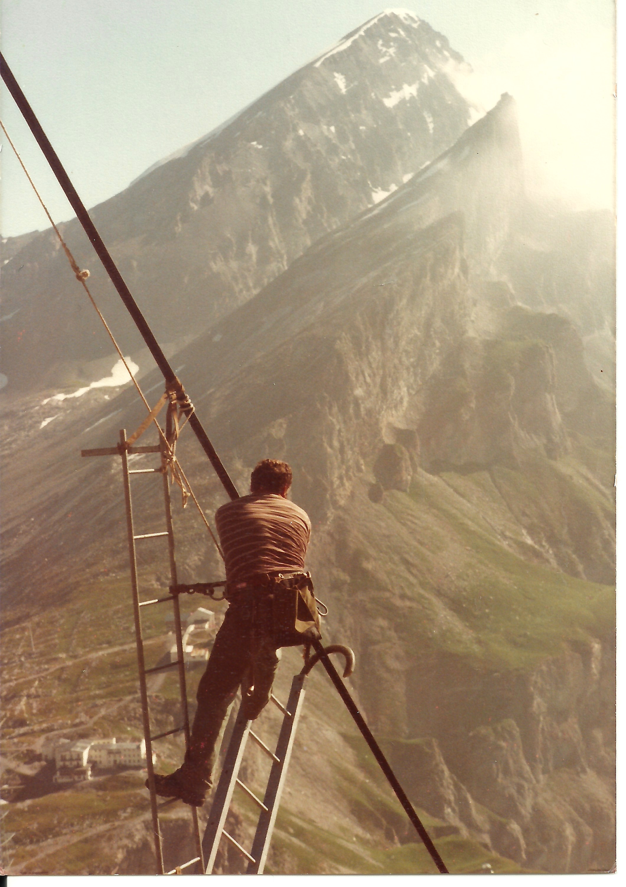 Forcella Nino Datazione: 1974Luogo: SvizzeraDescrizione: Nino Forcella, classe 1932, in sospensione mentre allaccia cavi dell’alta tensione di elettrodotto nelle montagne svizzere, anno 1974. Articolo precedente: Valceschini Umberto Prec Articolo successivo: Cantamessa Erminia Avanti