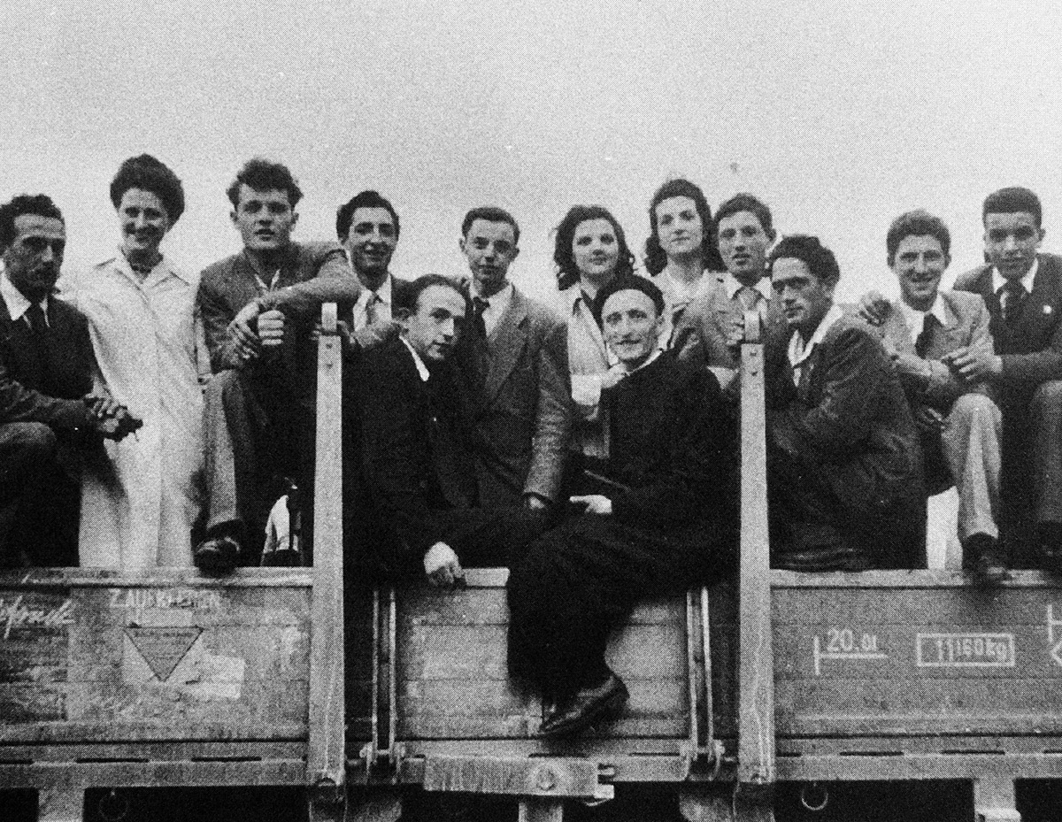 Il primo, il terzo e il quarto da sinistra in piedi sono Antonio Salvi, Lino Salvi e uno soprannominato “Giocondo”. Accosciati: Giacomino Locatelli, sagrista di Berbenno, e Giuseppe Salvi che morirà a 33 anni, nel 1955, colpito da un tronco d’albero.