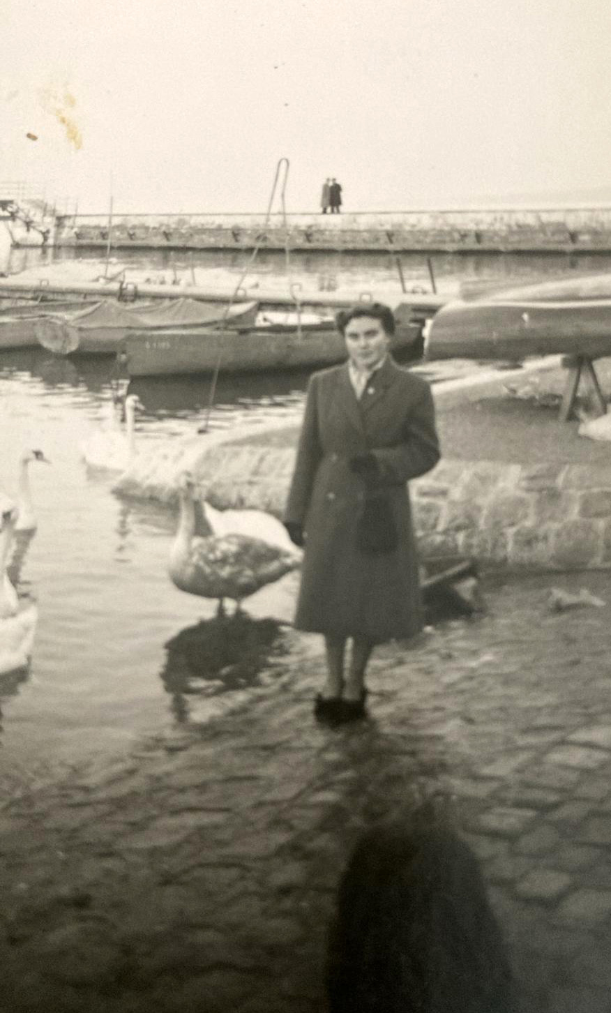 Descrizione: la futura moglie di Pietro Orlandini, Luisa Rossetto, originaria della provincia di Treviso, qui sulle rive del lago di Ginevra agli inizi degli anni ’50.