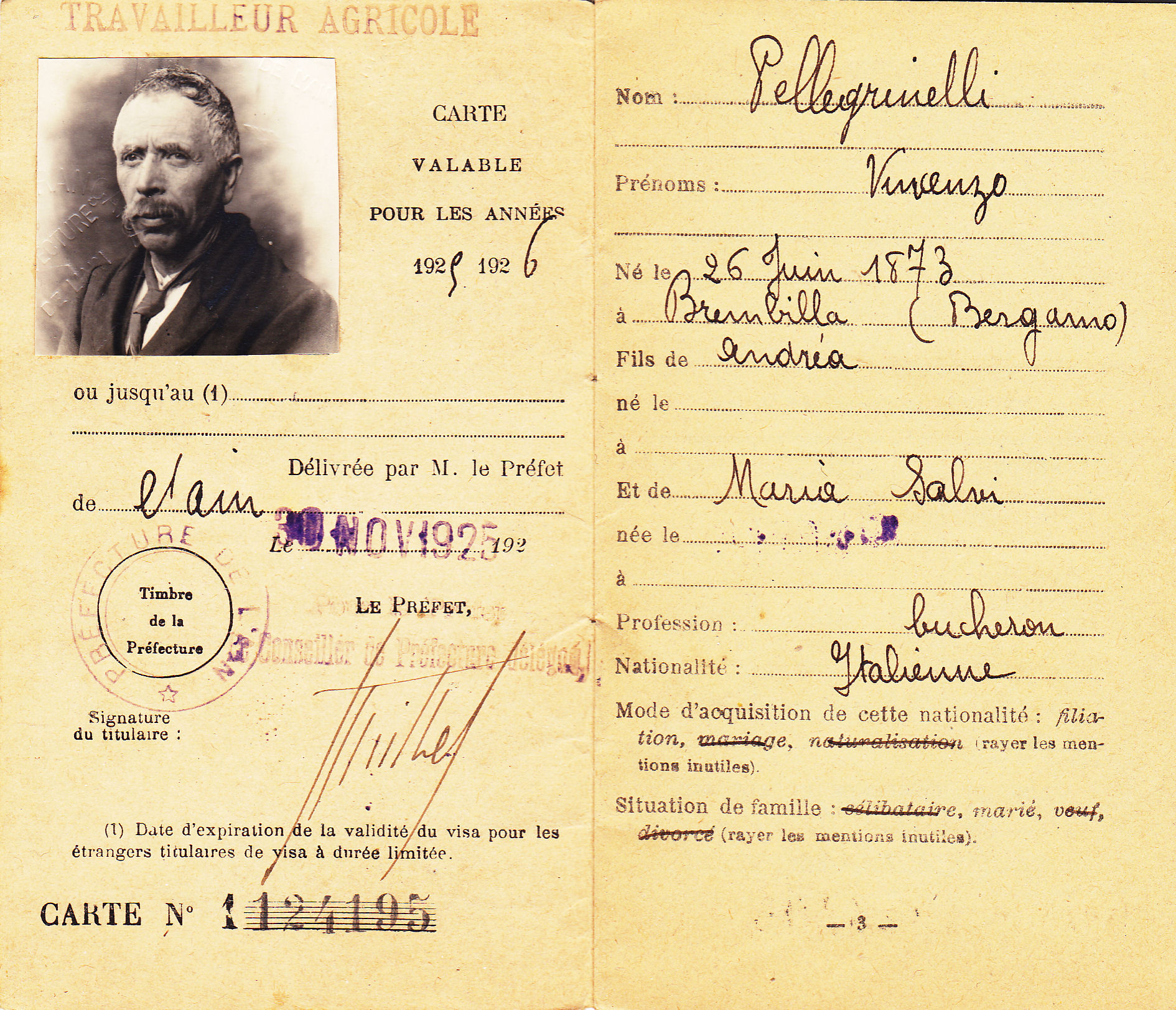 Descrizione: Pellegrinelli Vincenzo, Calegreno, Brembilla, nato il 26.6.1873.