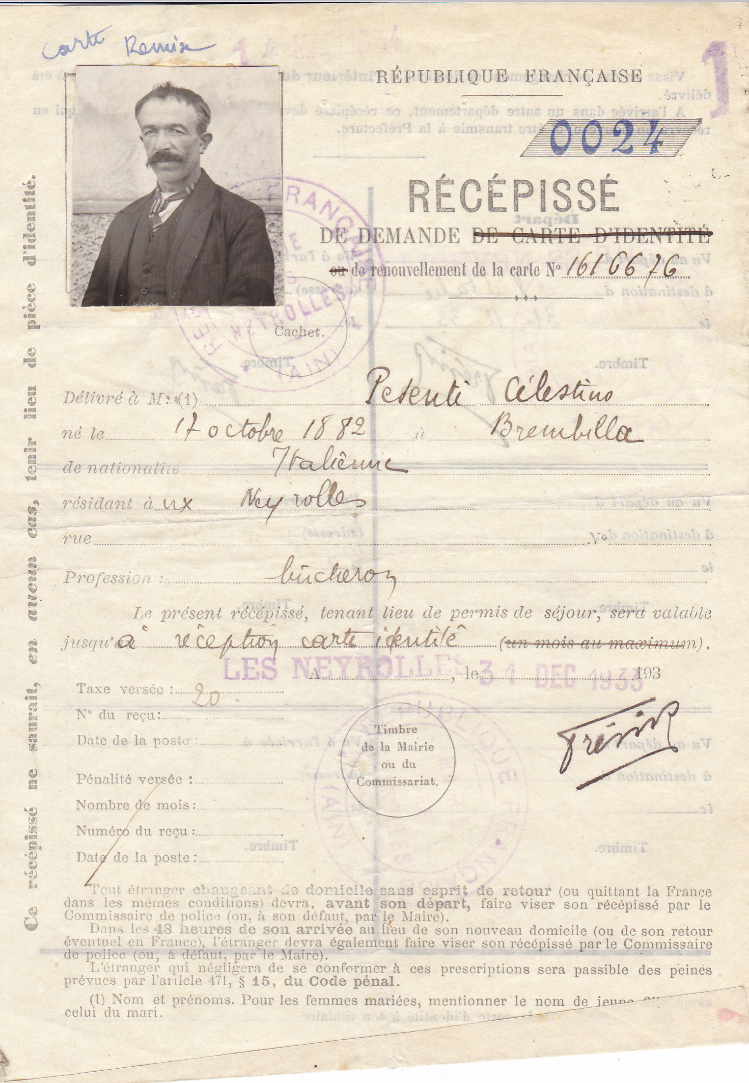 Descrizione: Pesenti Celestino, Cabonadino, Brembilla, nato il 17.10.1882. Boscaiolo