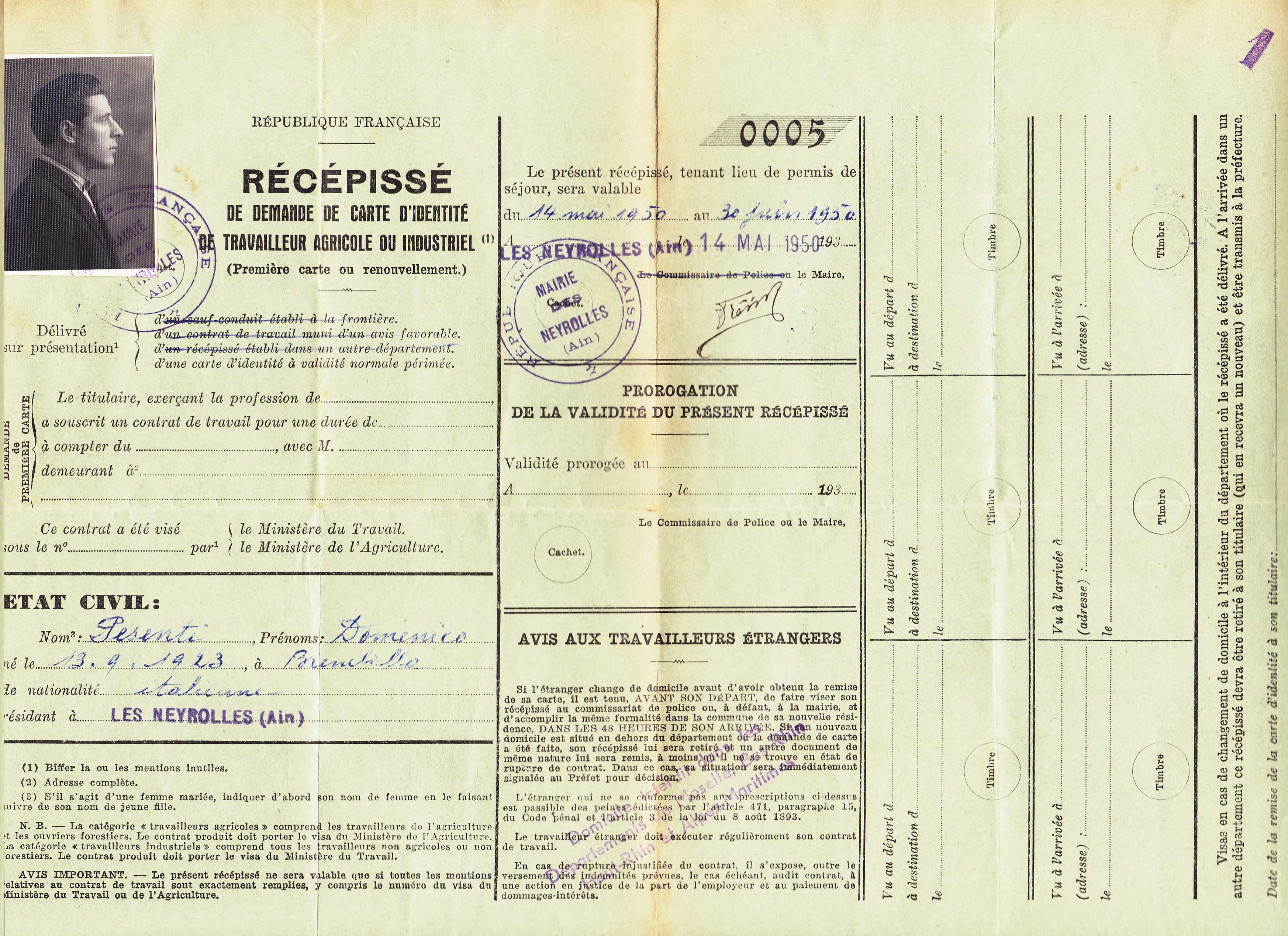 Descrizione: Pesenti Louis, Castignola, Brembilla, nato il 20.06.1923. Boscaiolo.