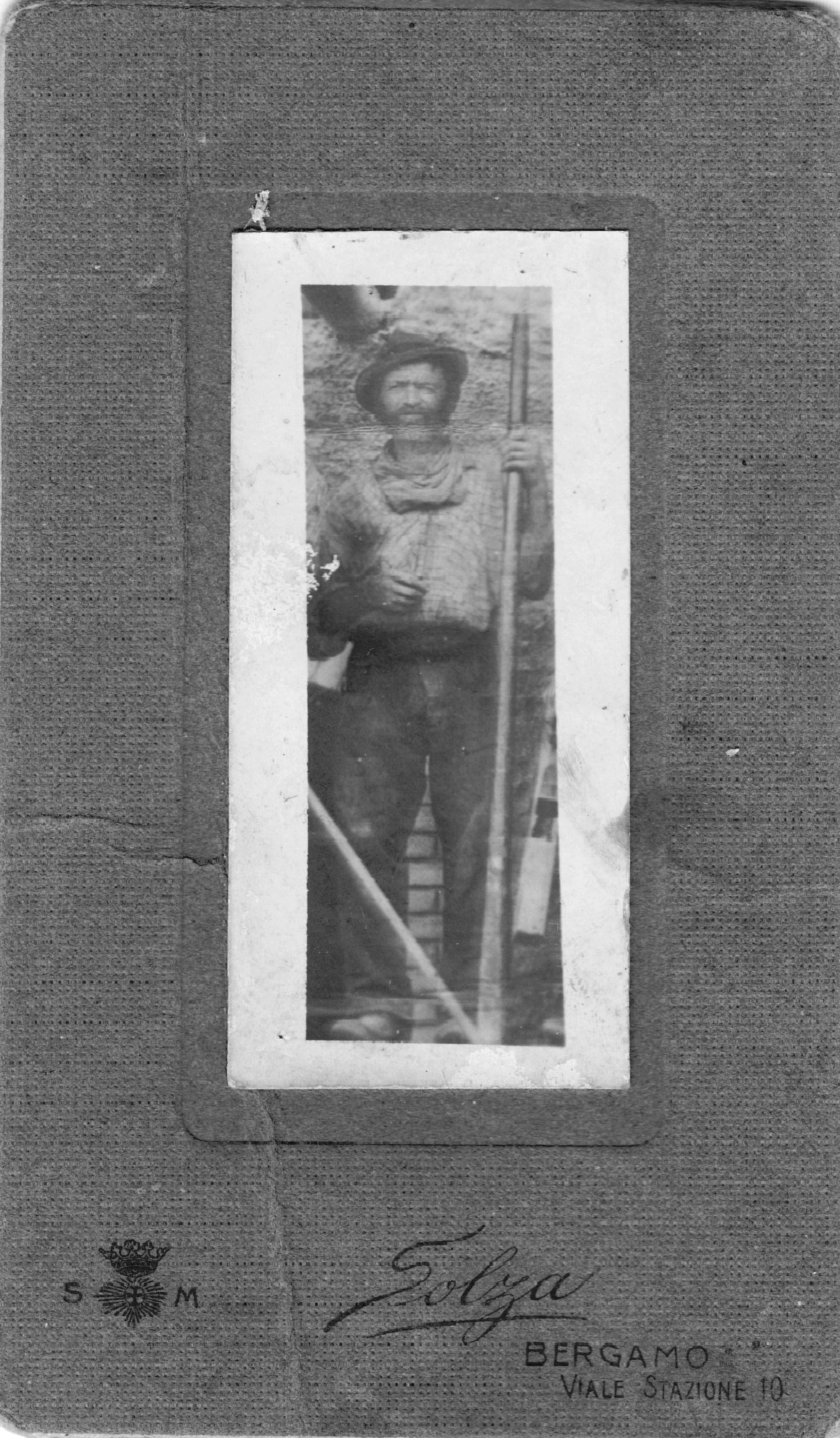 Descrizione: Gervasoni Francesco “ Trionfino ”classe 1878. Foto: 1906 - Pirenei - Francia . Era un emigrante stagionale spacca Pietre di Castignola di Là Brembilla..