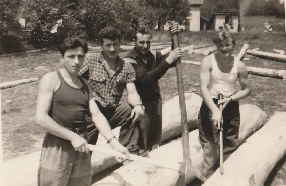 Descrizione: Emigranti boscaioli di Brembilla: primo da sinistra Pesenti Giovanni “Viciarolo”, secondo Carminati Pietro “Vaccarizzo” e i fratelli Locatelli “Gaetano” Blello.