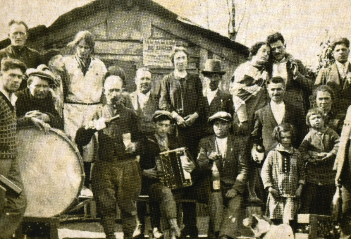 Santo Calegari, emigrante di Piazza Brembana, con la sua famiglia nella segheria di sua proprietà.