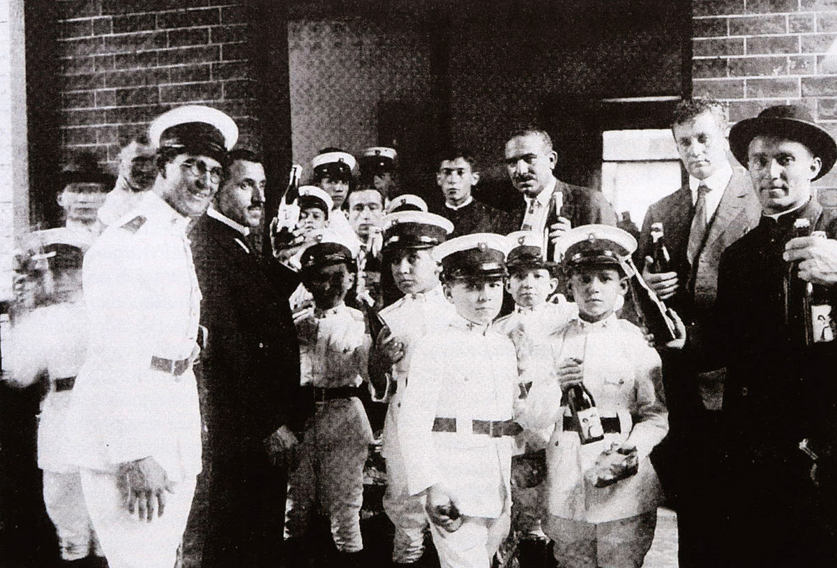 Giuseppe Calvi, di Moio de’ Calvi, missionario laico nello stato San Paolo del Brasile, fotografato nel 1924 con gli alunni del locale liceo figli di emigranti.