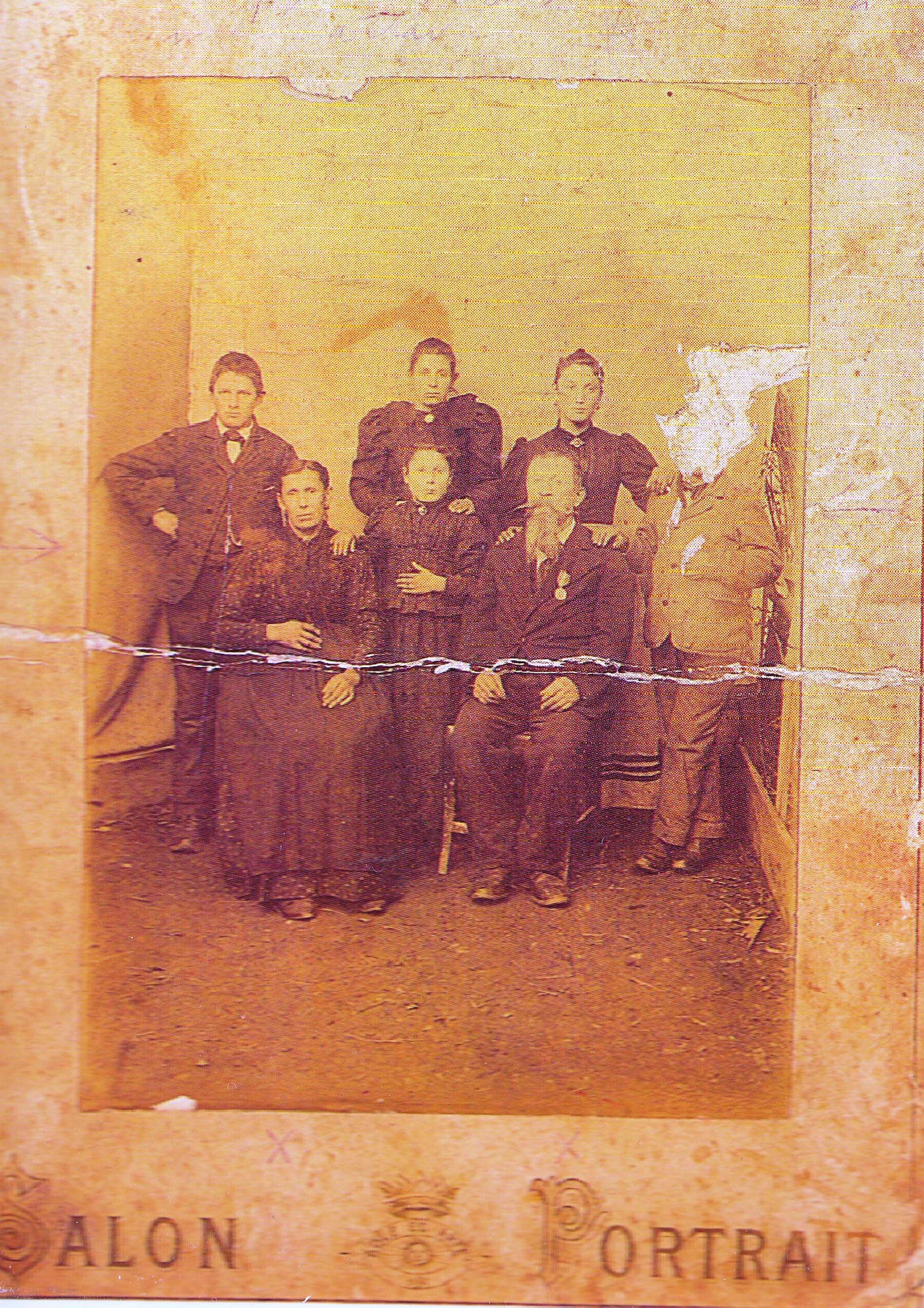 Descrizione: Carminati Giacomo di Stefano e Locatelli Domenica nato il 18 marzo 1831 a Brembilla, al centro nella foto di famiglia, decorato per atto eroico - foto 1893. Emigrante capo squadra in Sardegna nelle miniere del Sulcis, in un crollo a Iglesias nel 1867, riuscì a salvare la sua squadra composta da nove minatori di Brembilla.
