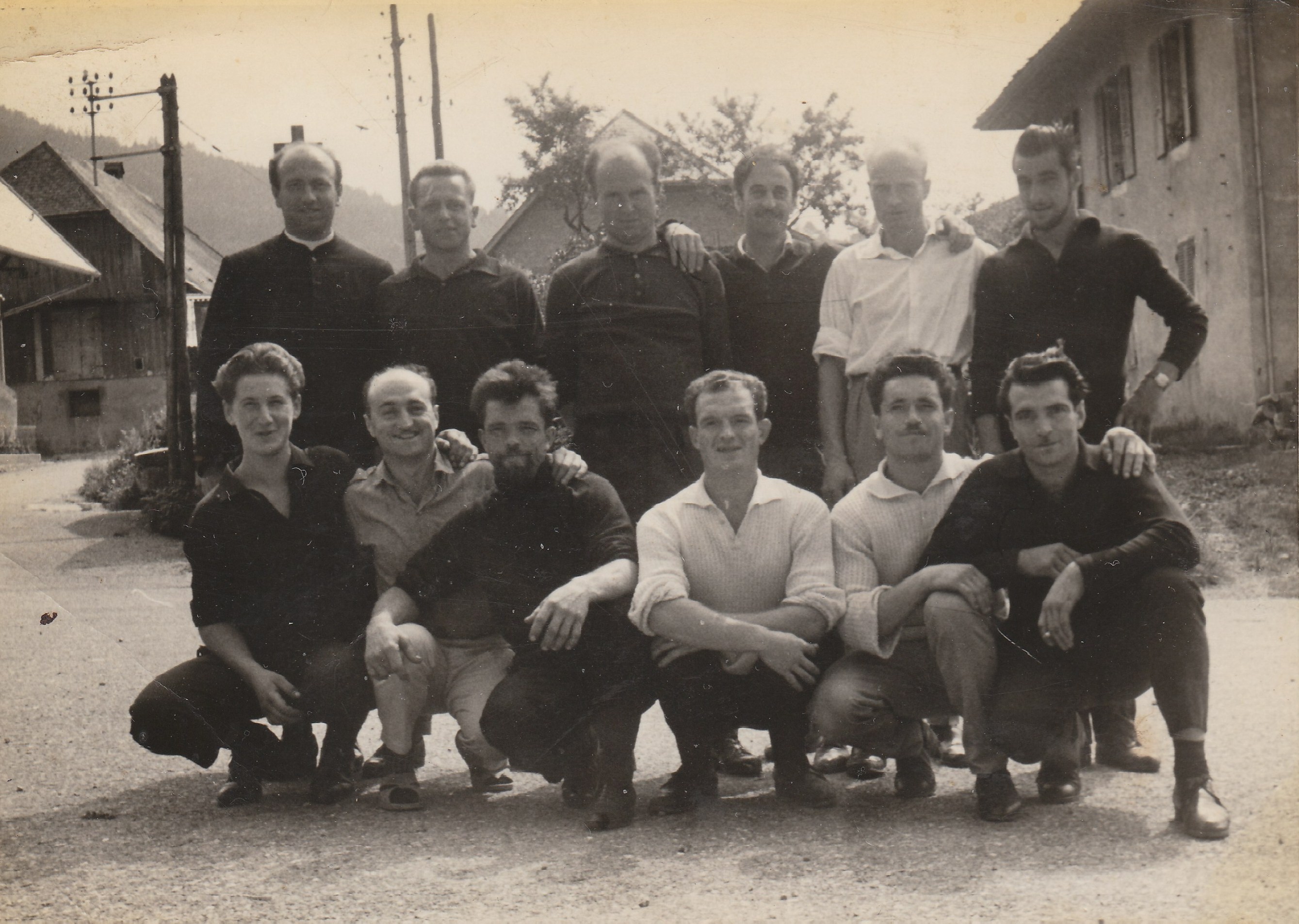 Nella terza immagine 1963 Annecy Francia. Da sinistra in alto, primo don Giuseppe Gritti (che fa visita ai boscaioli), secondo Pesenti Antonio, terzo Sonzogni Salvatore, quarto Pesenti Gianni, sesto Pesenti Andrea. In basso da sinistra primo Pesenti Alessandro (di Catremerio), secondo Pesenti Martino, terzo Pesenti Pietro “Barbì”, quarto Sonzogni Luigi, quinto Pesenti Antonio “Barbì”, sesto Pesenti Bortolo.