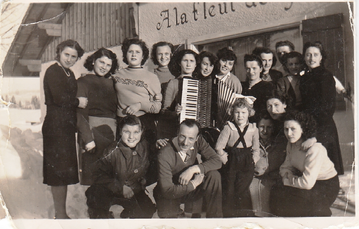 Descrizione: emigranti di Brembilla impegnate nelle fabbriche di macchine da scrivere, fotografiche e orologi in un giorno di festa. In alto da sinistra: Rinaldi Elisa, seconda Locatelli Delfina, quarta Bettinelli Caterina, sesta Carminati Licia, decima Bettinelli, undicesima Valceschini. In basso da sinistra: secondo Genini Angelo, quarta Bettinelli Anita, quinta Carminati e sesta Locatelli Elisa ”Lorena”.