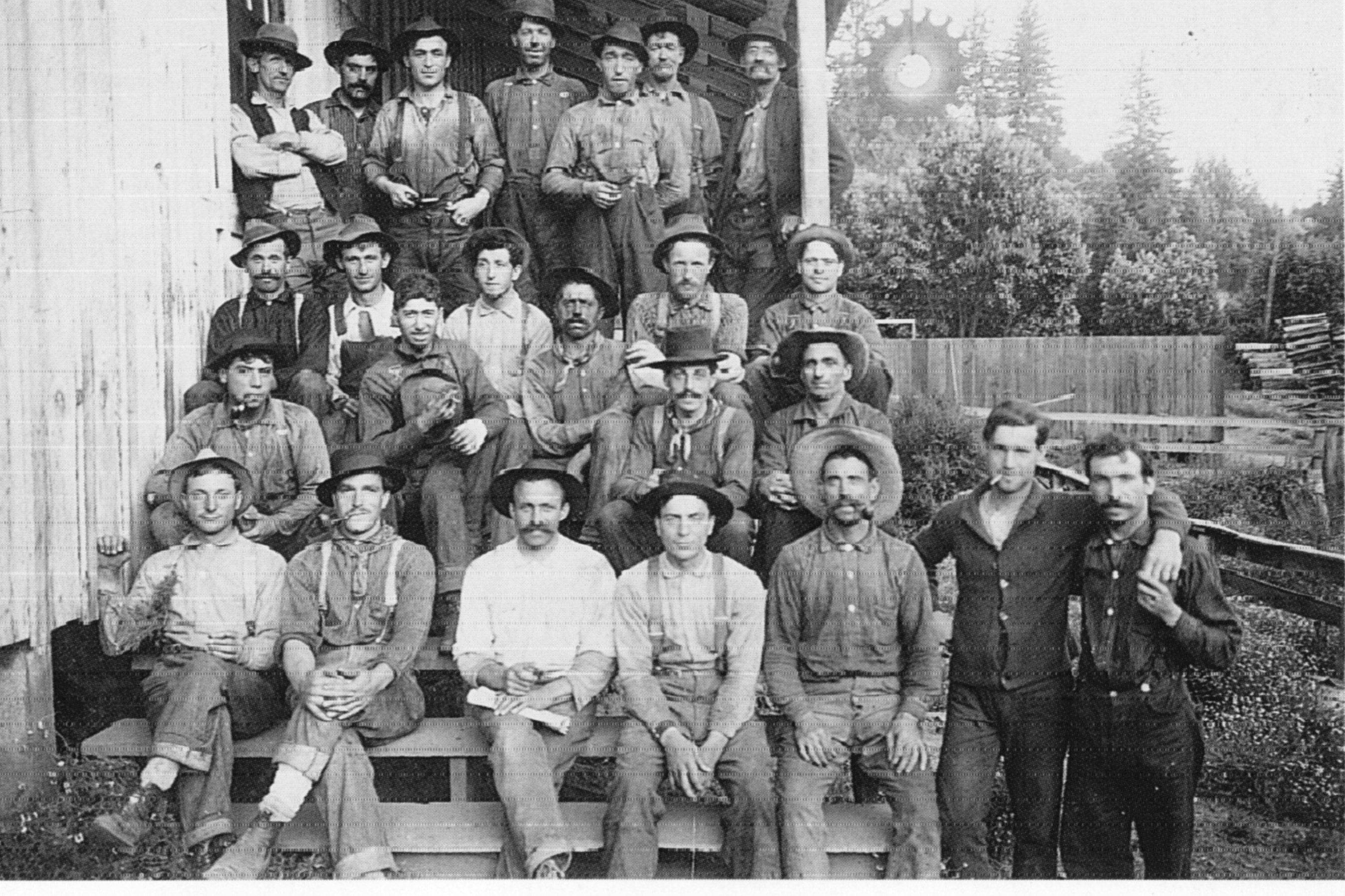 Descrizione: Gruppo di emigranti boscaioli di Brembilla: in prima fila 3° da sx Carminati Giovanni – Tesotti - 4° Rebucini Battista classe 1863 di Musita. In seconda fila da sx 3° è Locatelli Battista cl. 1877- Roccolo di Brembilla.