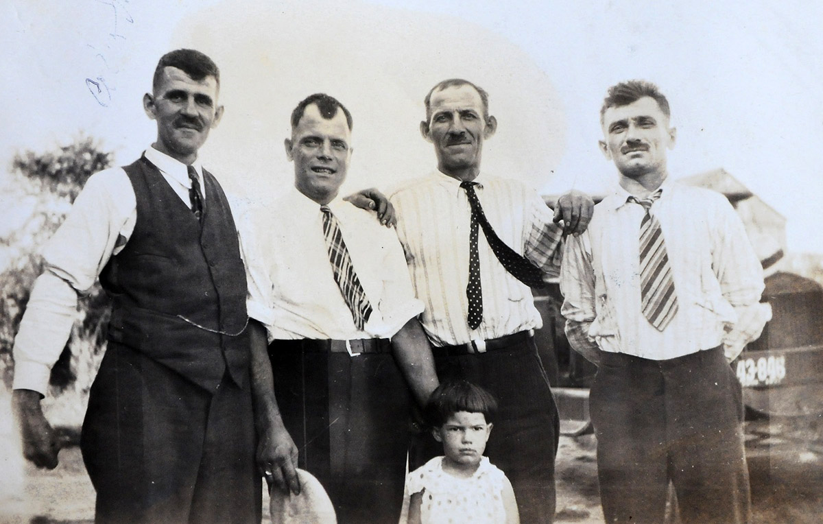 Da sinistra, Celestino Balestra, Lorenzo Mainetti, Giovanni Gozzi, Felice Balestra e la piccola Rina figlia di Lorenzo. Giovanni Gozzi e la moglie Antonietta Calvi si stabilirono invece definitivamente in America dopo la Grande guerra; il loro figlio maggiore Bill diventò titolare di un grande allevamento di tacchini a Guilford, nel Nord Carolina. Sempre a Guilford emigrarono Lorenzo Mainetti la moglie Ines Begnis e i loro cinque figli, allevatori di polli.