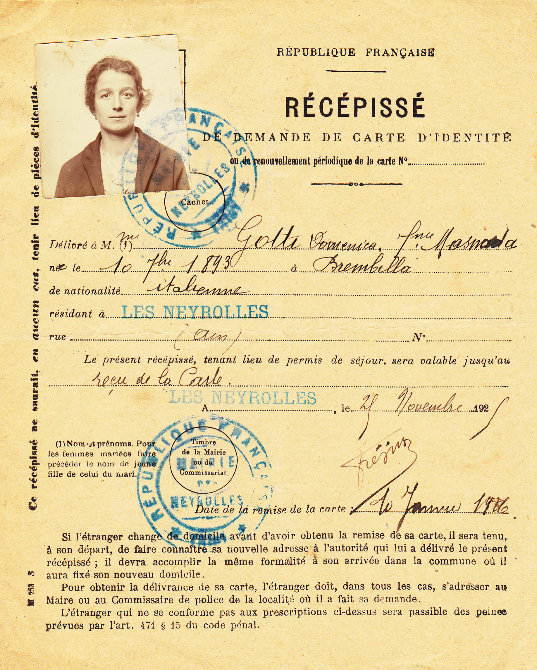 Descrizione: Gotti Domenica, coniugata Masnada, Mulino Ories, Brembilla, nata il 10.09.1893.