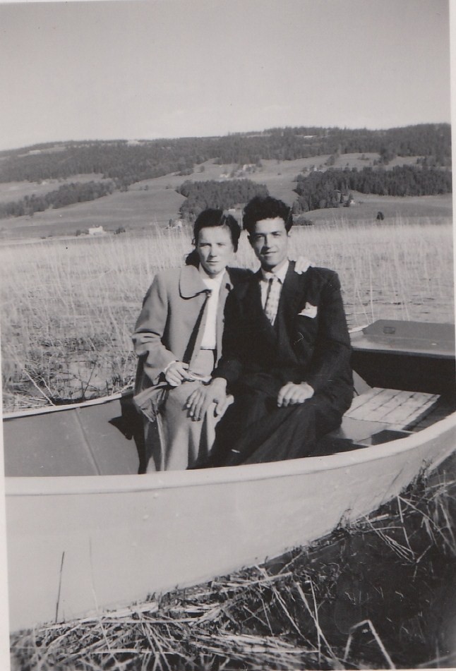 Descrizione: Locatelli Maria ”Baiordo” e Giuseppe Valceschini “Signùr” emigranti di Cavaglia Brembilla in luna di miele.