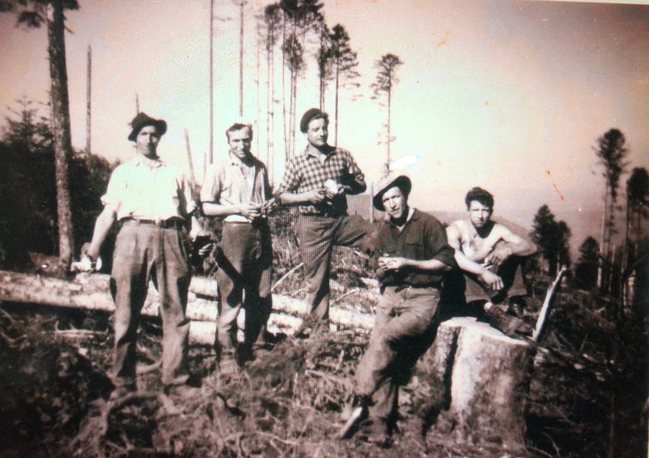 Descrizione: da destra i fratelli Lorenzo e Battista Pellegrini nati il 15 febbraio 1930 e 21 gennaio1921 alla Maroncella di Brembilla. Battista arriva a Treminis con la moglie Angela da Gavazzone e la figlia Carmen, avranno altri due figli Maria e Giovanni, e si stabiliranno là. La figlia Carmen assisterà per diversi anni gli emigranti per poi diventare una grande stilista conosciuta in tutto il mondo. Battista morì in un incidente nel 1971.