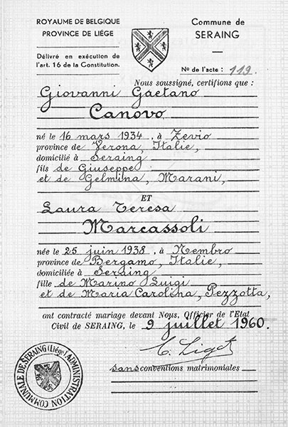 Intervista a Marcassoli Laura (Nembro, 26/6/1938), emigrante bergamasca in Belgio