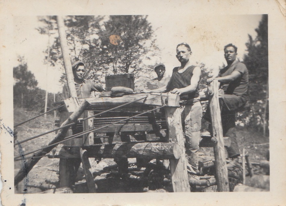 Descrizione: Emigranti boscaioli: primo da sinistra Rinaldi Paolo, secondo Pesenti Alessandro e quarto Rinaldi Giovanni di Sotto Camorone Brembilla.