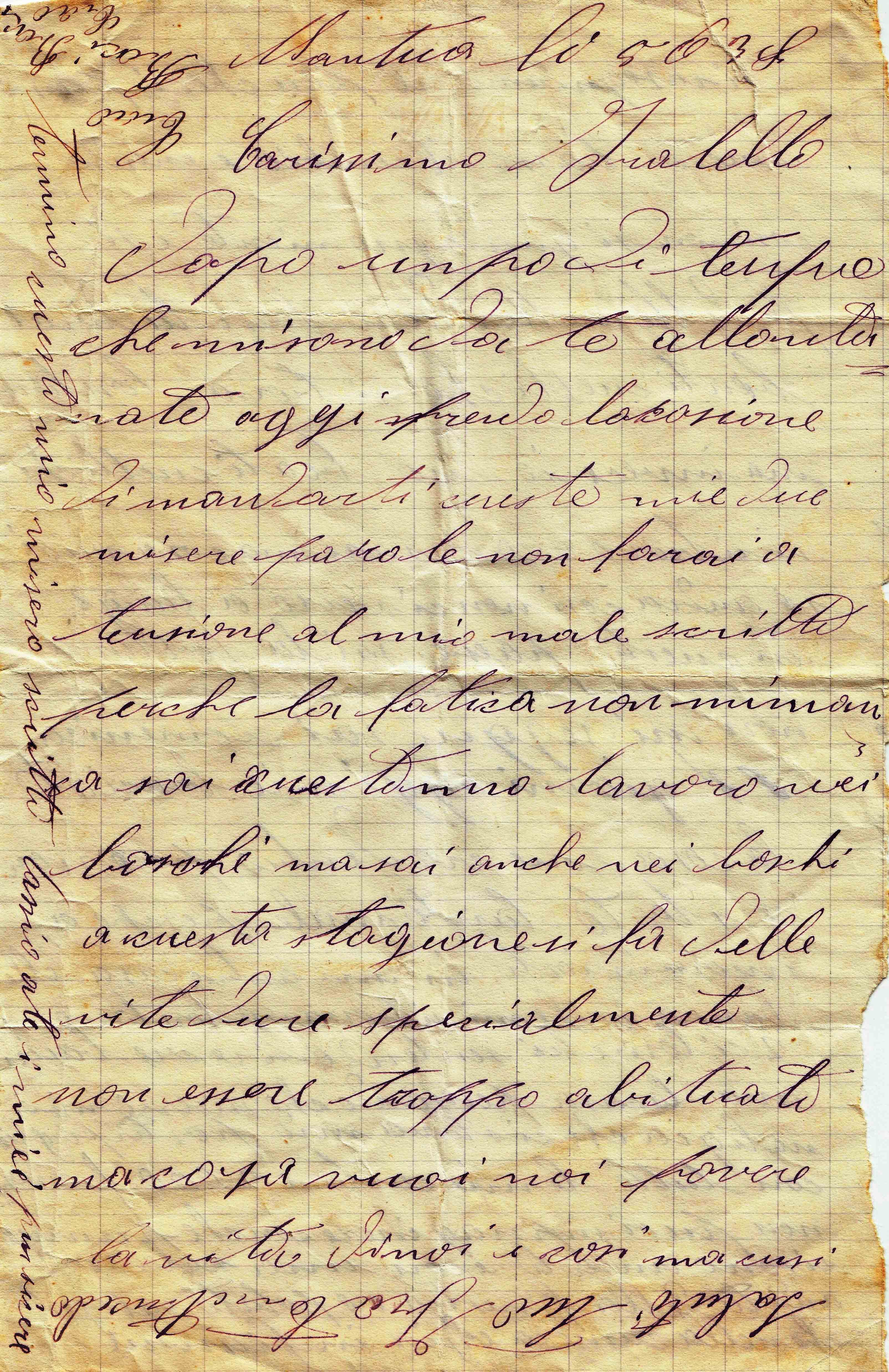 Descrizione: Pellegrini Angelo, Calegreno, Brembilla, nato il 29.12.1912, boscaiolo. Lettera al fratello da Nantua.