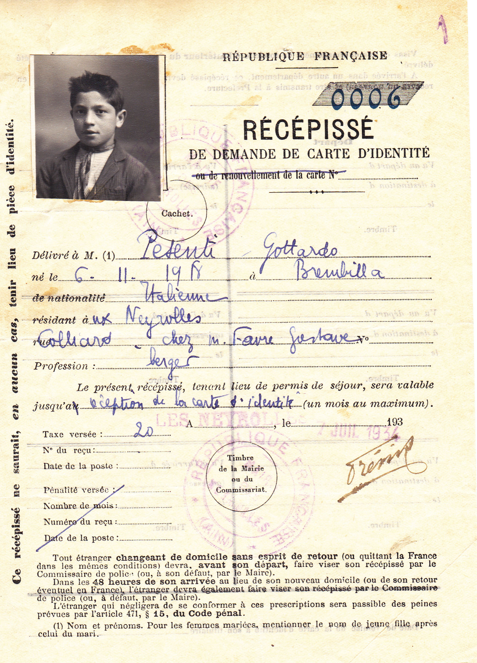 Descrizione: Pesenti Gottardo, Camuzocco, Brembilla, nato il 06.11.1918, boscaiolo.