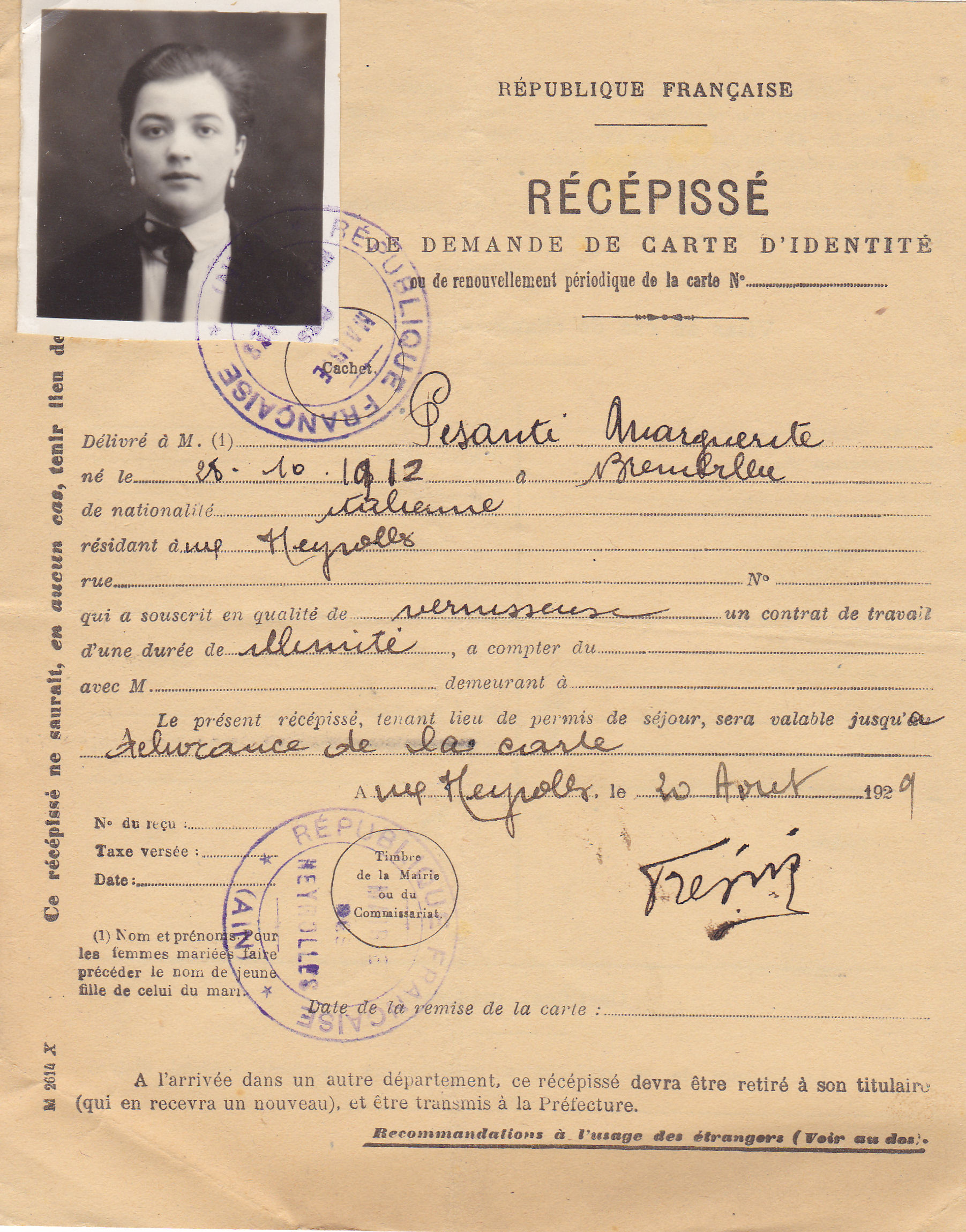 Descrizione: Pesenti Margherita, Camuzocco, Brembilla, nata il 28.10.1912. Figlia di Pesenti Giovanni "Stèca" e Rocchi Dorina.