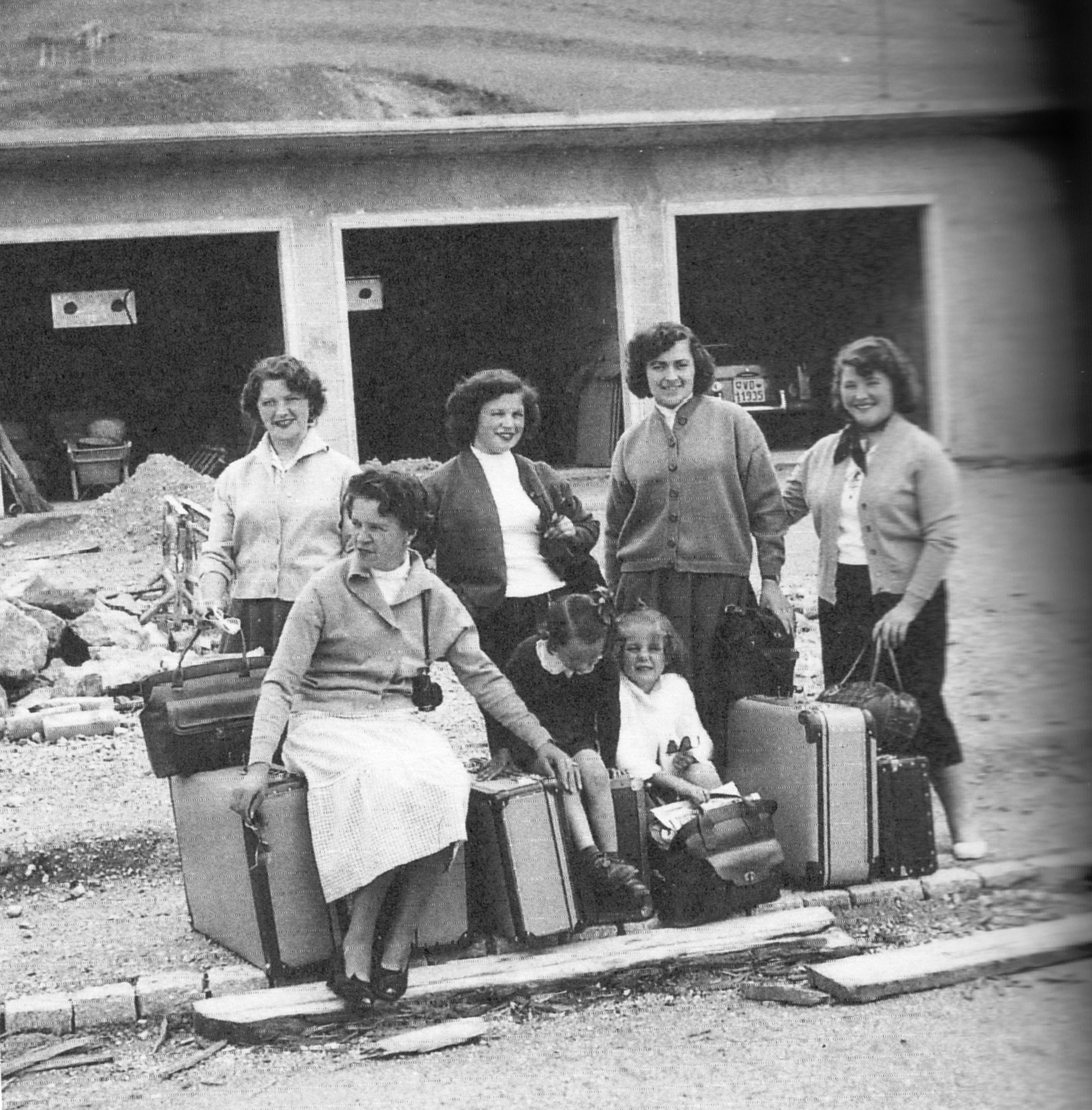 Descrizione: le sorelle Pellegrini e amiche di Brembilla che rientrano al paese natio per un periodo di ferie. In prima fila seduta Giacomina e le figlie Patrizia e Jiosiane. In piedi da sinistra Lina, Rita , e le due amiche di viaggio.