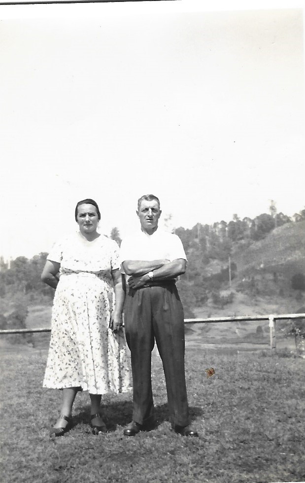 Zambelli Battista e Pesenti Rossi Angela Datazione: 1955Luogo: Murwillumbah, AustraliaDescrizione: Nella tenuta della famiglia Zambelli, adibita alla coltivazione delle banane. Nell'immagine i coniugi Zambelli Battista, nato al Levrange Br., e Angela Pesenti Rossi, nata a Gerosa il 21 gennaio 1907. Articolo precedente: Del Col Mario Prec Articolo successivo: Zavattin Dino Avanti